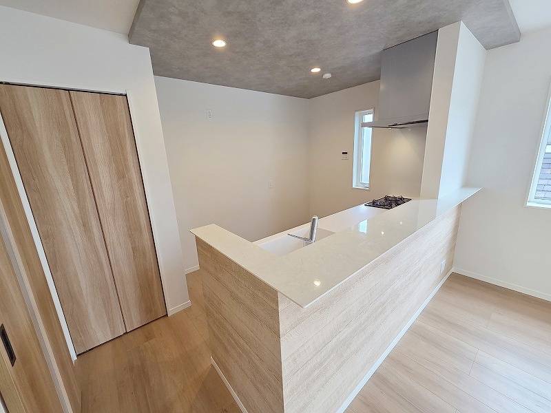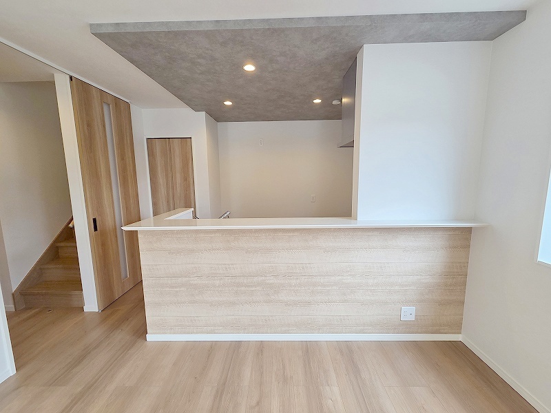 カウンターキッチンならではの開放的な見通し、全体が見渡せることでご家族の団欒スペースもより明るく笑顔が溢れる空間となります。