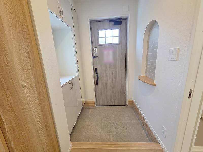 玄関は家の第一印象を左右する重要な場所。ほどよい広さとスタイリッシュな色遣いが印象的です。