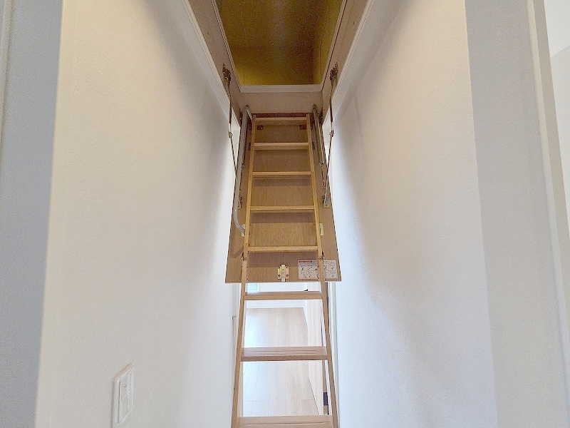 大きな屋根裏部屋はなんだかワクワクしてしまうスペース。季節物の収納など色々な用途に利用できそうな予感。