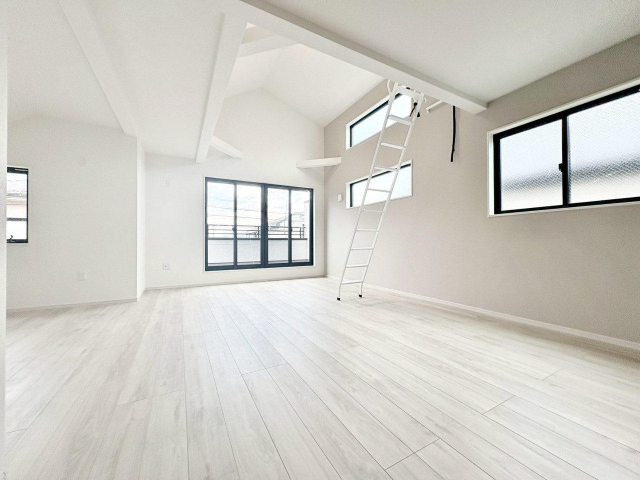 大きな屋根裏部屋はなんだかワクワクしてしまうスペース。趣味の空間や子供のワークスペース、季節物の収納など色々な用途に利用できそうな予感。
