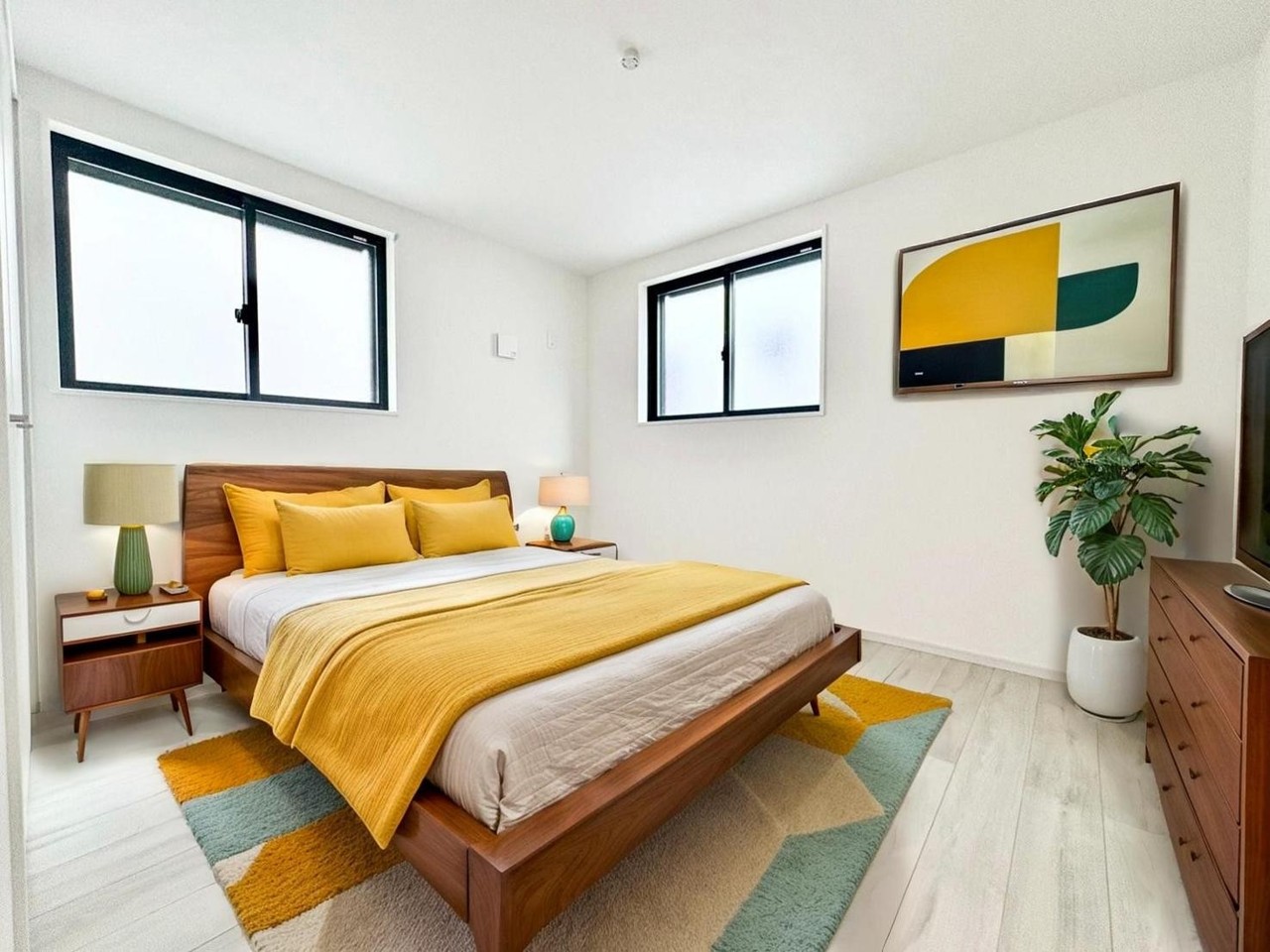 洋室はモダンなデザインと機能性を備え、快適な生活空間に。明るい窓から差し込む自然光が広々とした空間をさらに明るく開放的に感じさせます。
