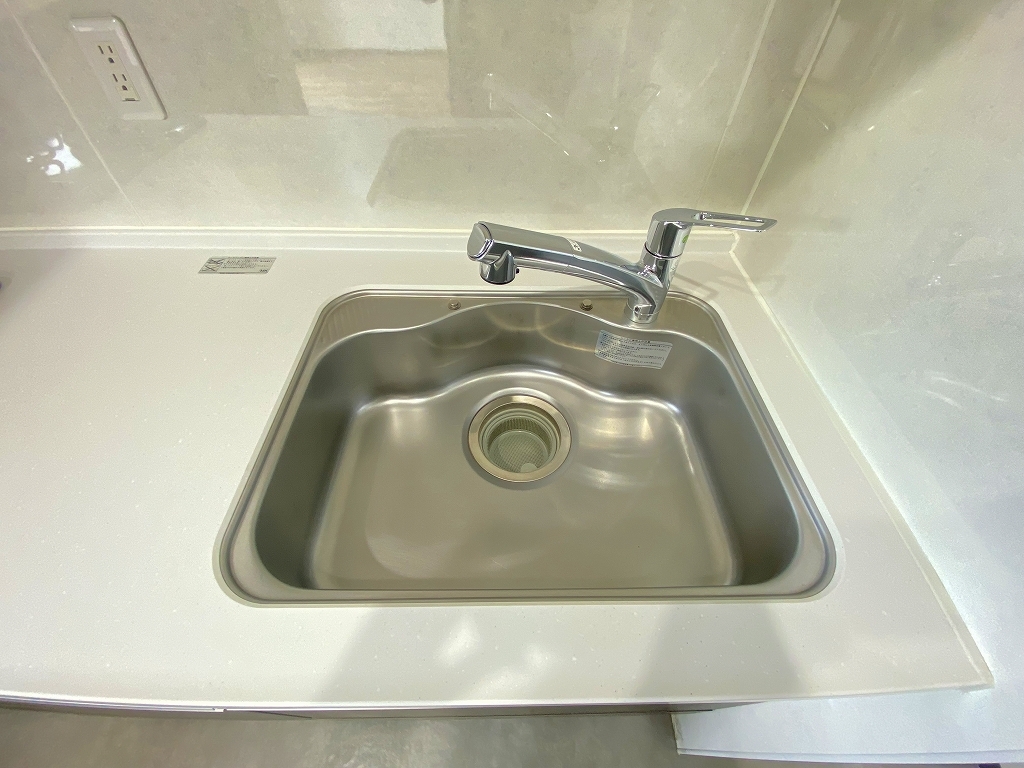 照り返しが眩しいシンク付きのキッチンで、楽しくお料理しませんか。