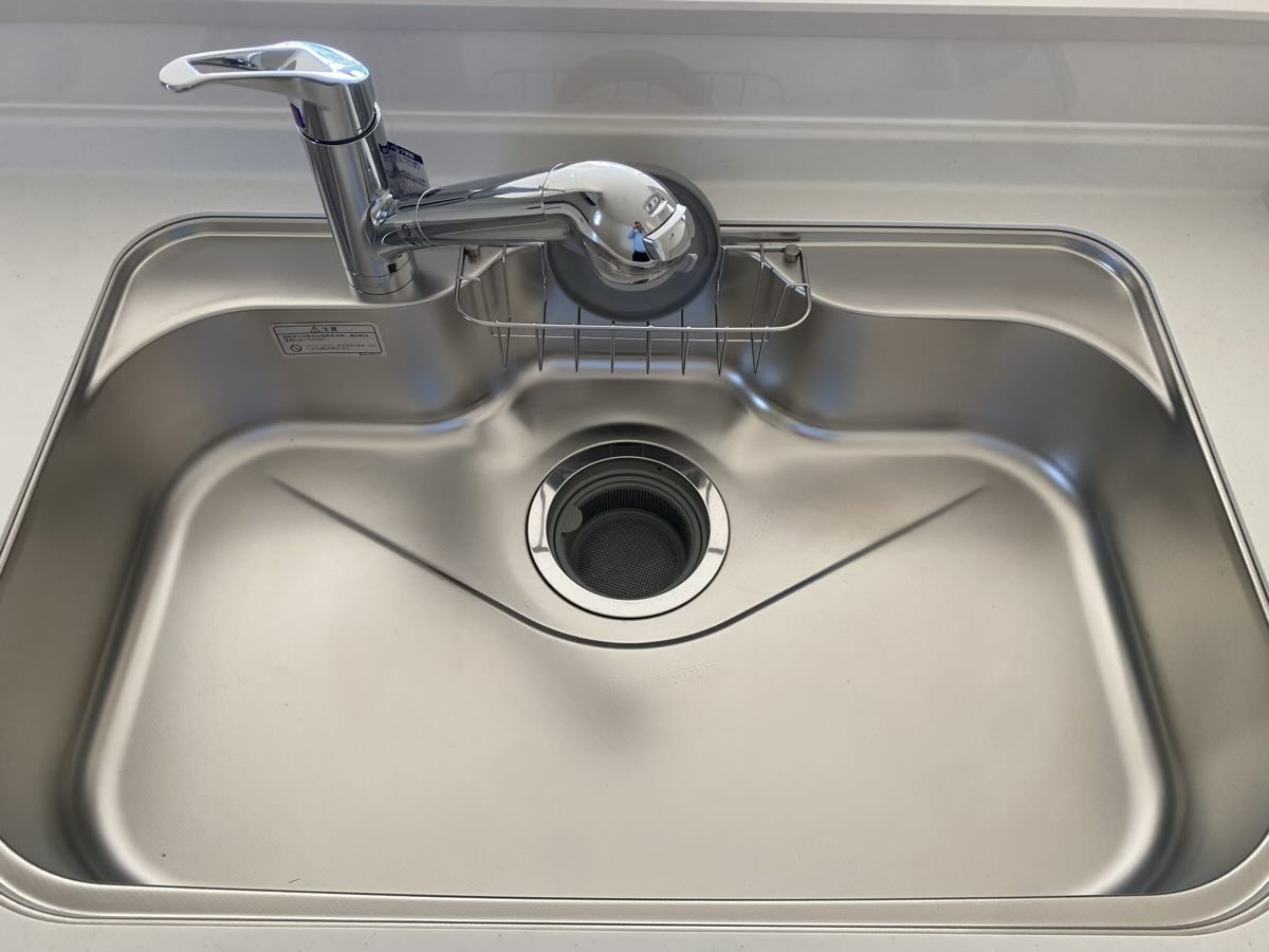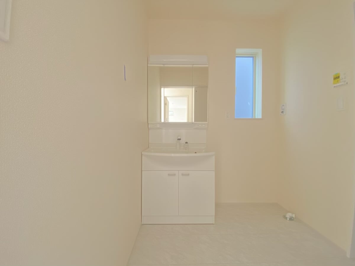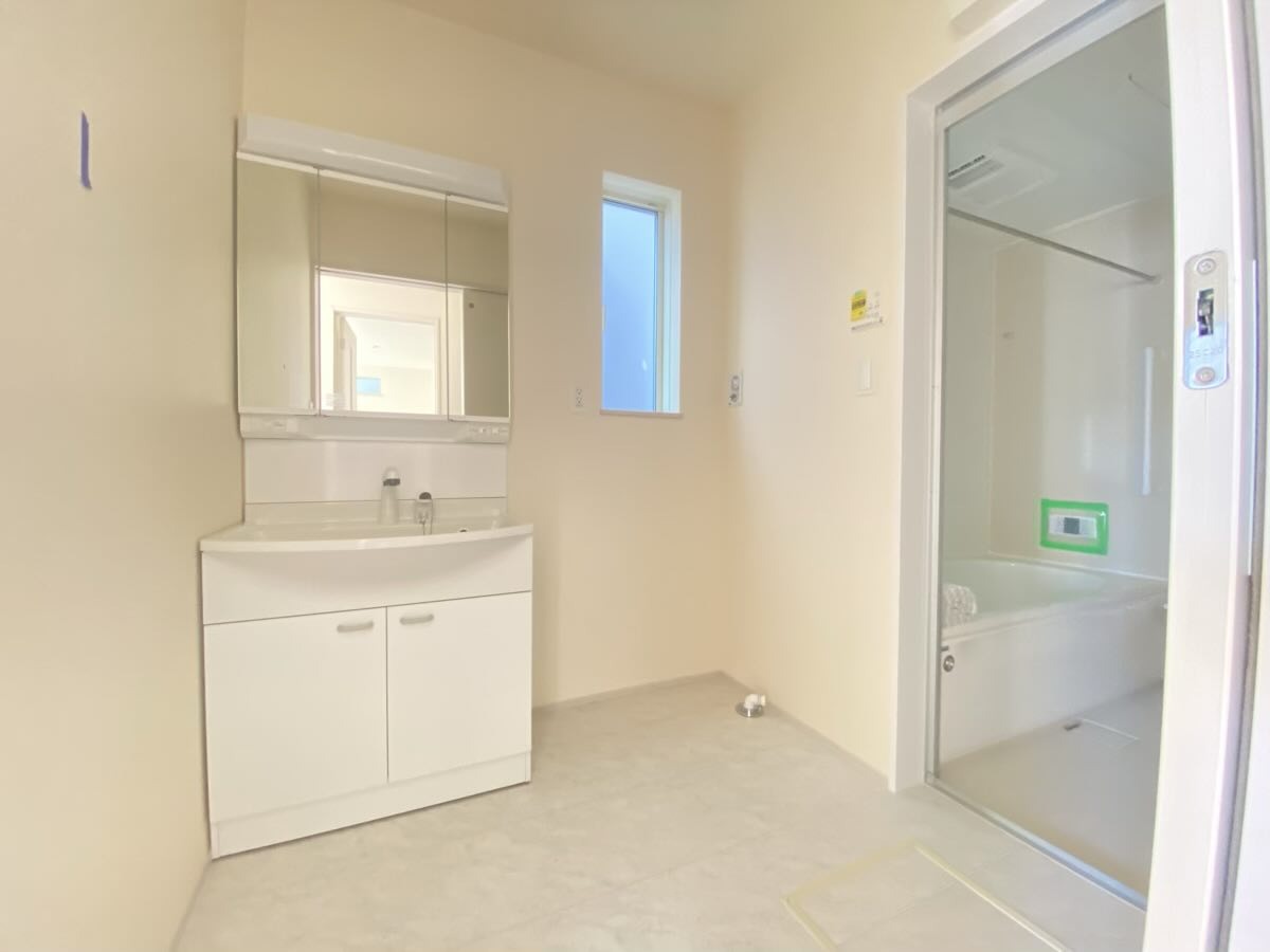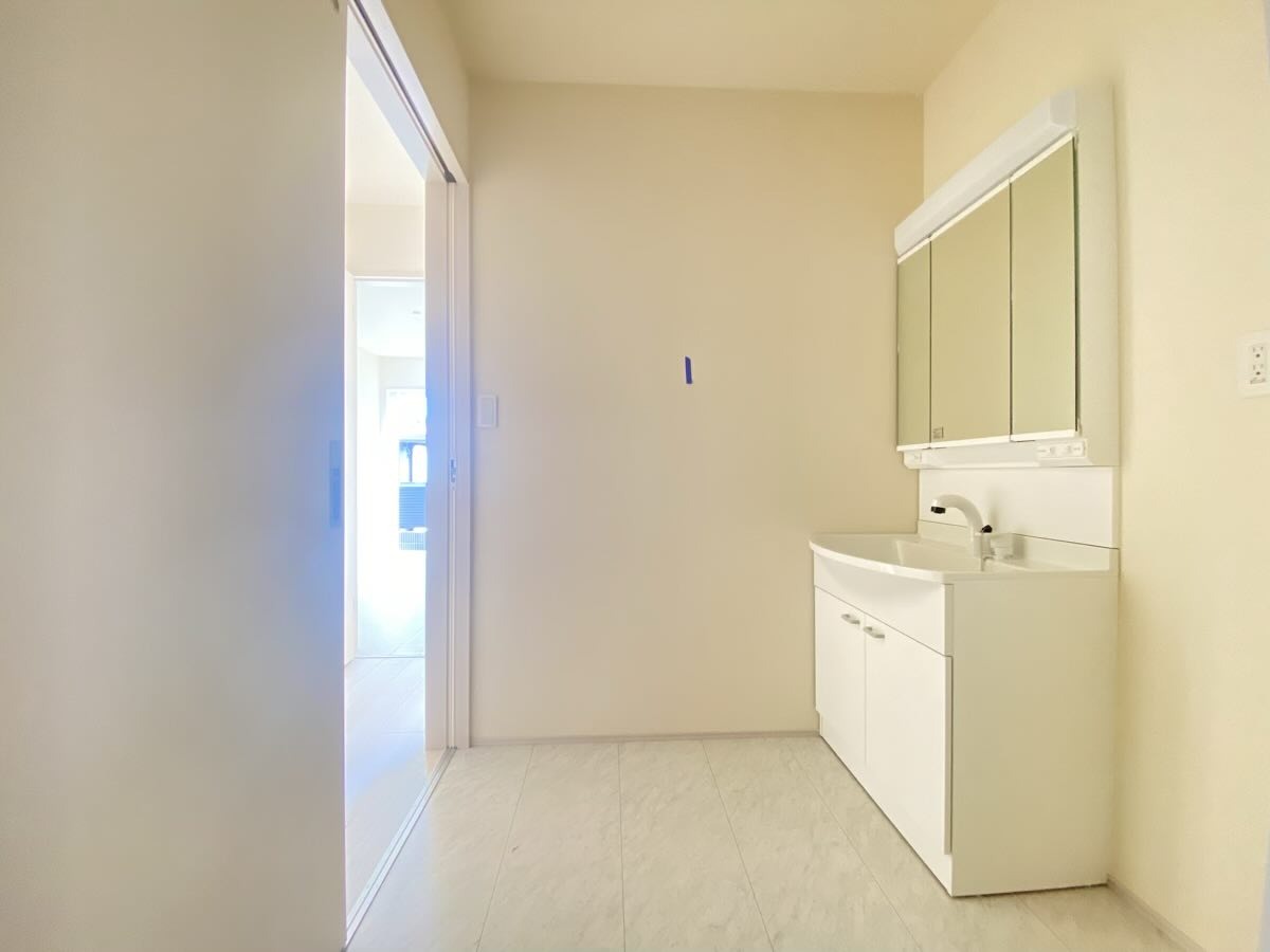 三面鏡にハンドシャワー付き、 使いやすい洗面台。