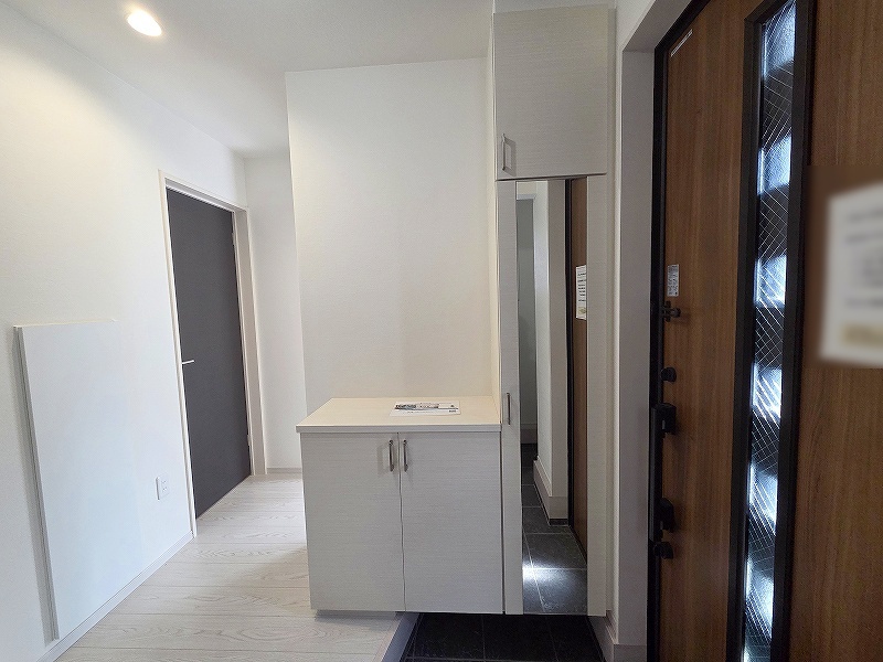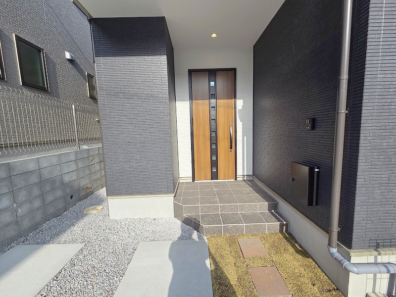 玄関は家の第一印象を左右する重要な場所。ほどよい広さとスタイリッシュな色遣いが印象的です。