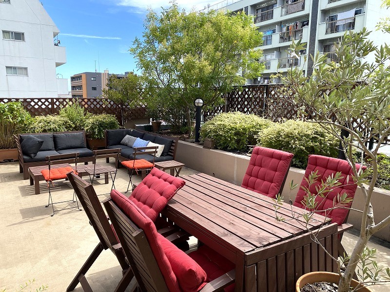 落ち着いた空間が魅了的な大型ルーフバルコニー。