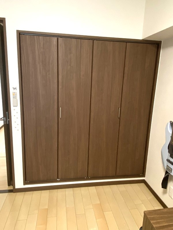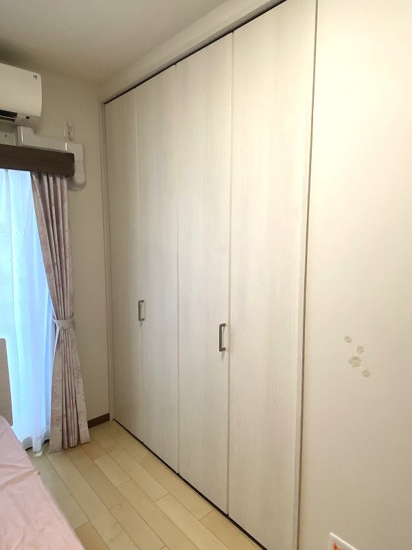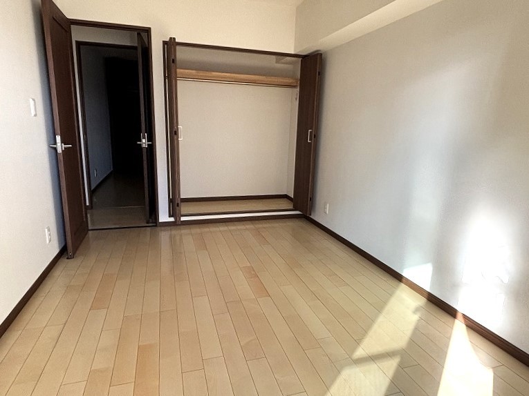 8帖の寝室は、大きなベットが置けて大型収納付きとなっております。