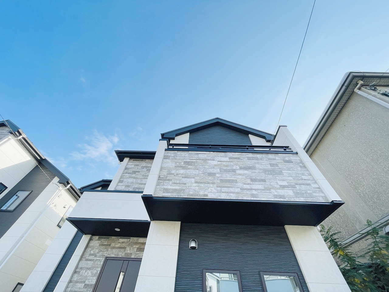 周辺の街並みの中で適度な主張、生活に溶け込むシンプルなデザインの外観が魅力の一戸建です。