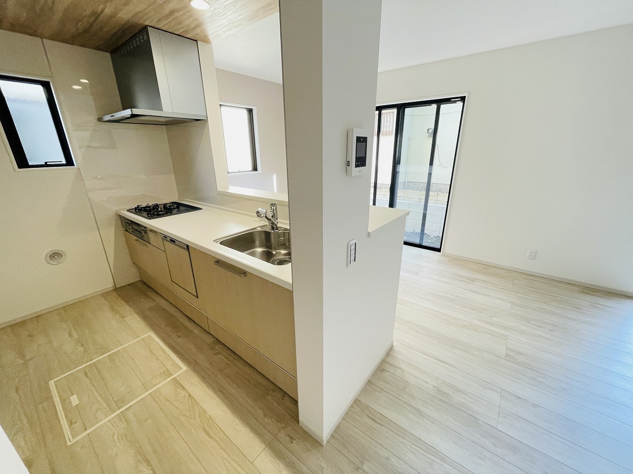 キッチンコンロスペースの近くには、空気の入れ替えが可能な開口部を設置!! お料理をする際には、換気扇を回しながら匂いが籠らない様に開放してお料理もお楽しみ頂けます。