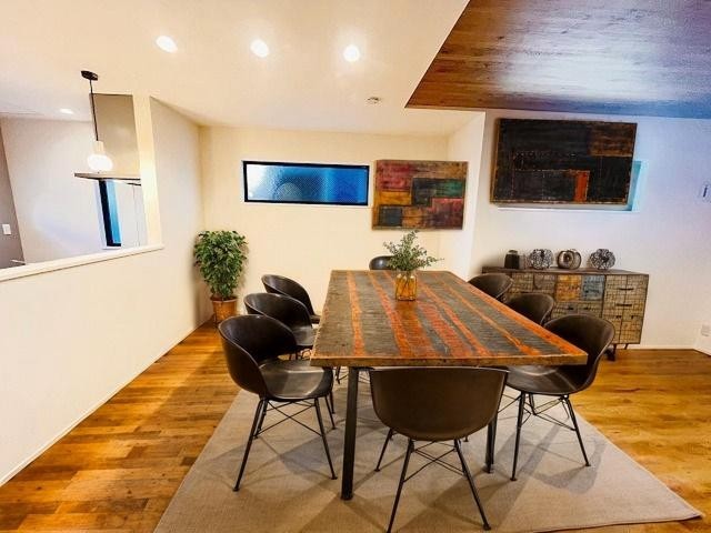カウンターキッチンは、キッチン側とリビング側に分かれてお店間隔でのお食事も可能!! お休みの日には、いろいろな楽しみ方を家族みんなでお楽しみください
