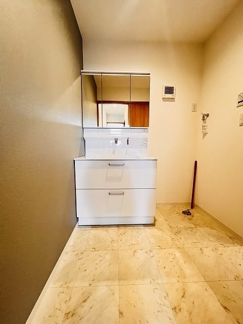 使いやすいタイプの洗面化粧台のあるランドリースペース