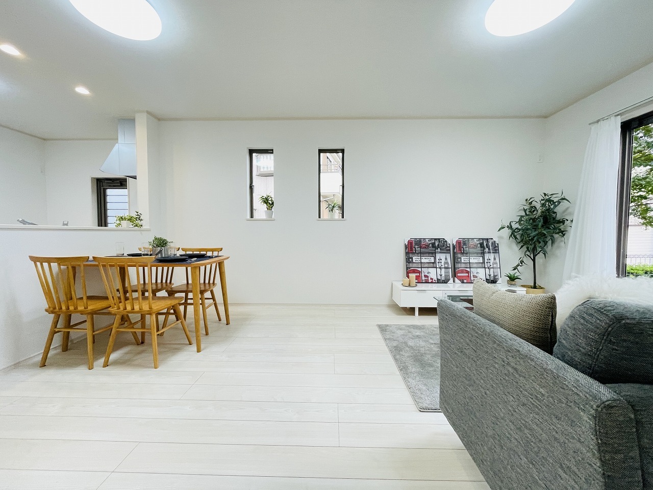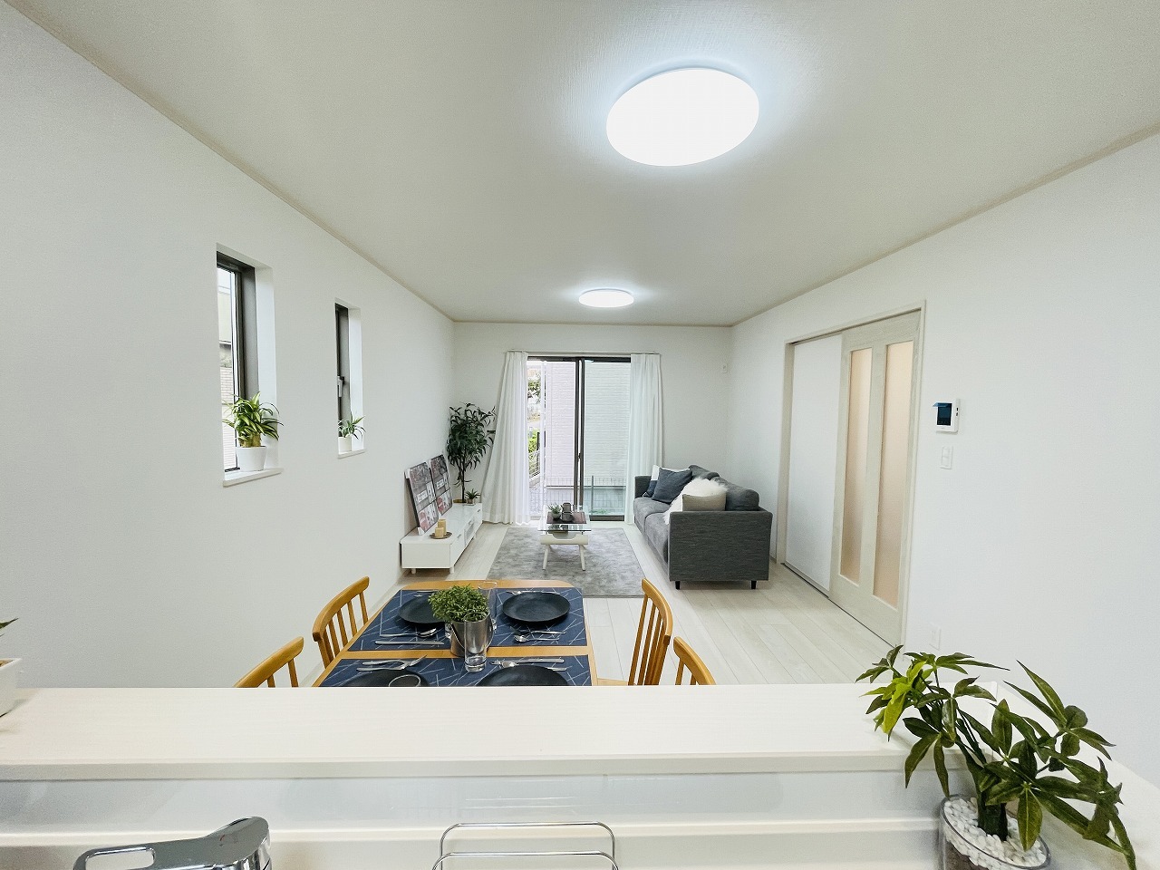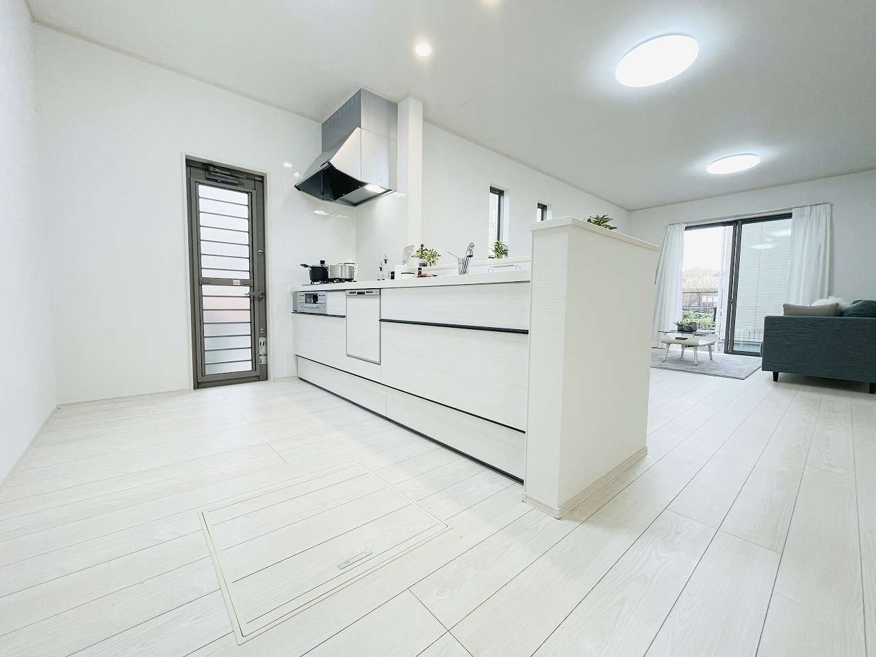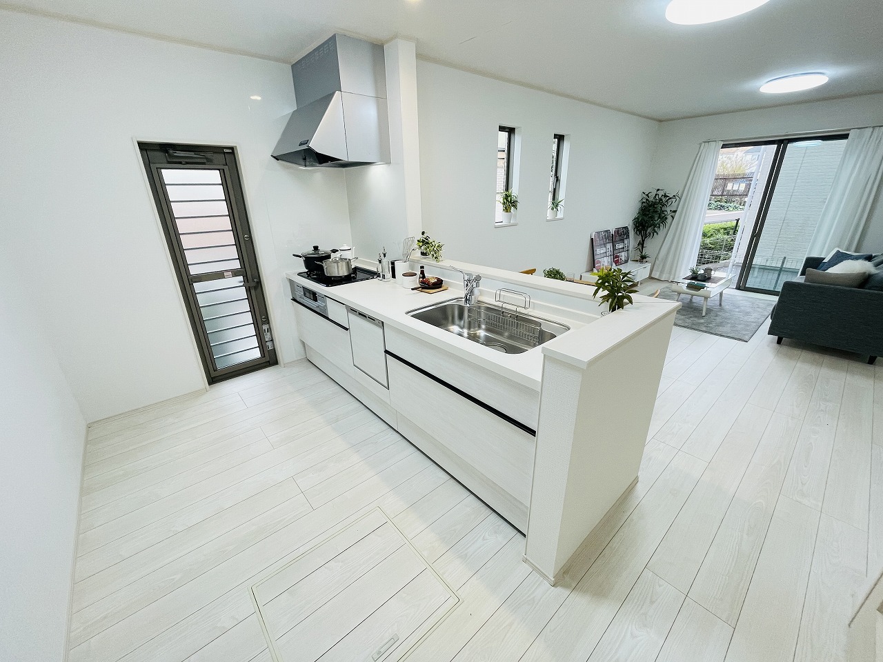 カウンターキッチンならではの開放的な見通し、全体が見渡せることでご家族の団欒スペースもより明るく笑顔が溢れる空間となります。