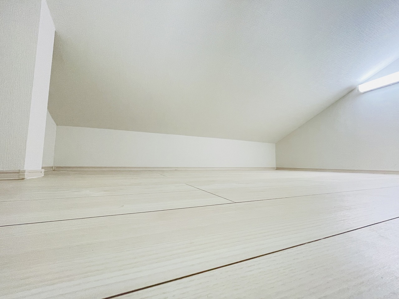 大きな屋根裏部屋はなんだかワクワクしてしまうスペース。趣味の空間や子供のワークスペース、季節物の収納など色々な用途に利用できそうな予感。