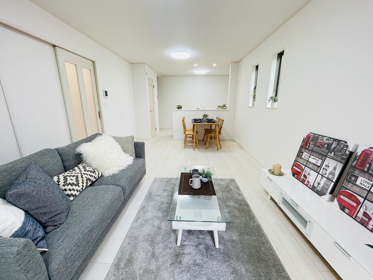 家族みんなが集まるリビング。広さを重視した家族全員が集まれるリビングは、住む上で大事な空間になります。