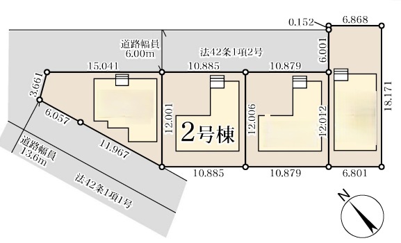 | 土地面積 | 130.66m² 公簿 (私道289.49m²別に有、私道持分比率:1/4、ごみ置場面積・持分:3.82平米×1/4ずつ) | ||