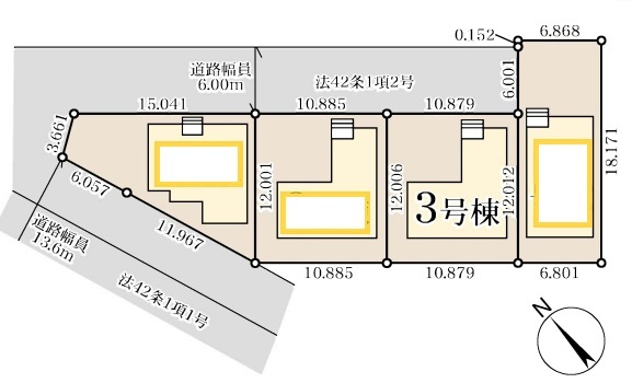 | 土地面積 | 130.66m² 公簿 (私道289.49m²別に有、私道持分比率:1/4、ごみ置場面積・持分:3.82平米×1/4ずつ) | ||