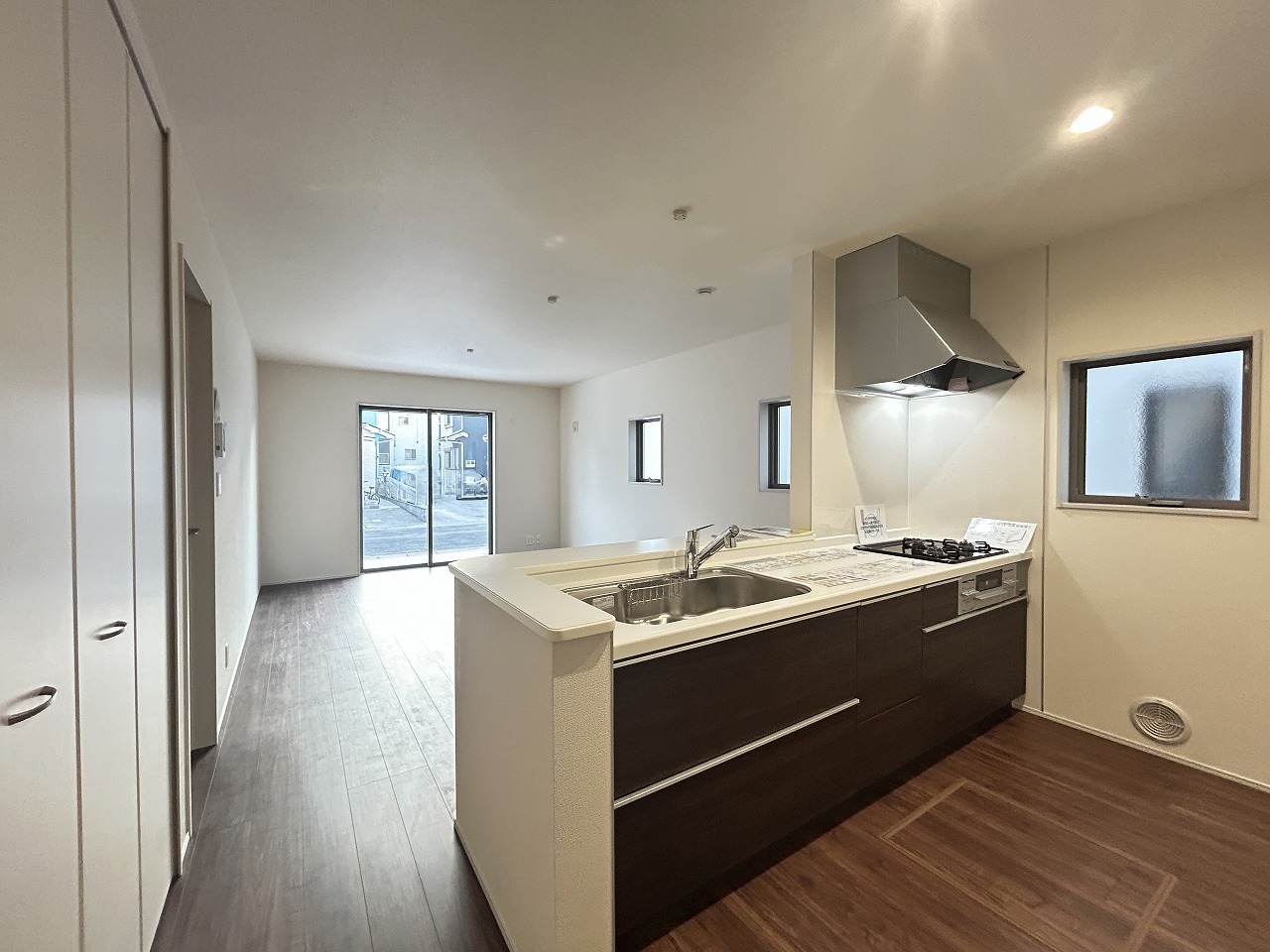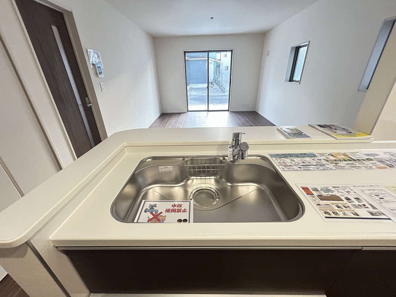 リビングで遊ぶお子様を見守りながらお料理ができる、対面キッチン。