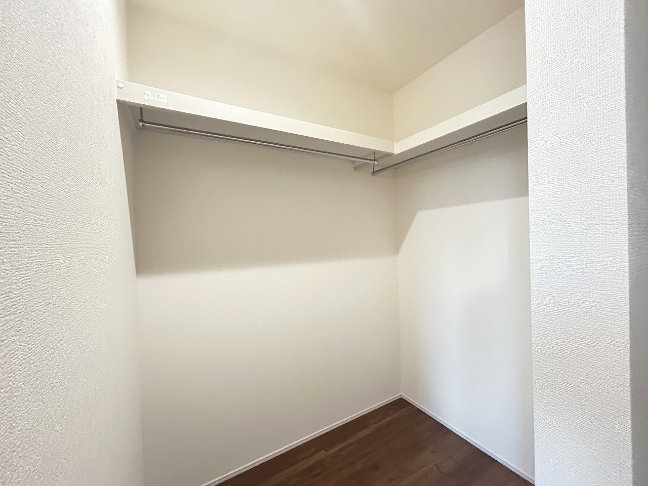 季節物の衣類もスッキリ収納できる、ウォークインクローゼット。