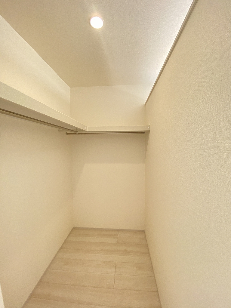 季節物の衣類もスッキリ収納できる、ウォークインクローゼット。