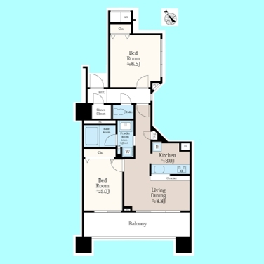 | 間取 | 2LDK (LDK11.8帖、洋室6.5帖、洋室5帖) | ||