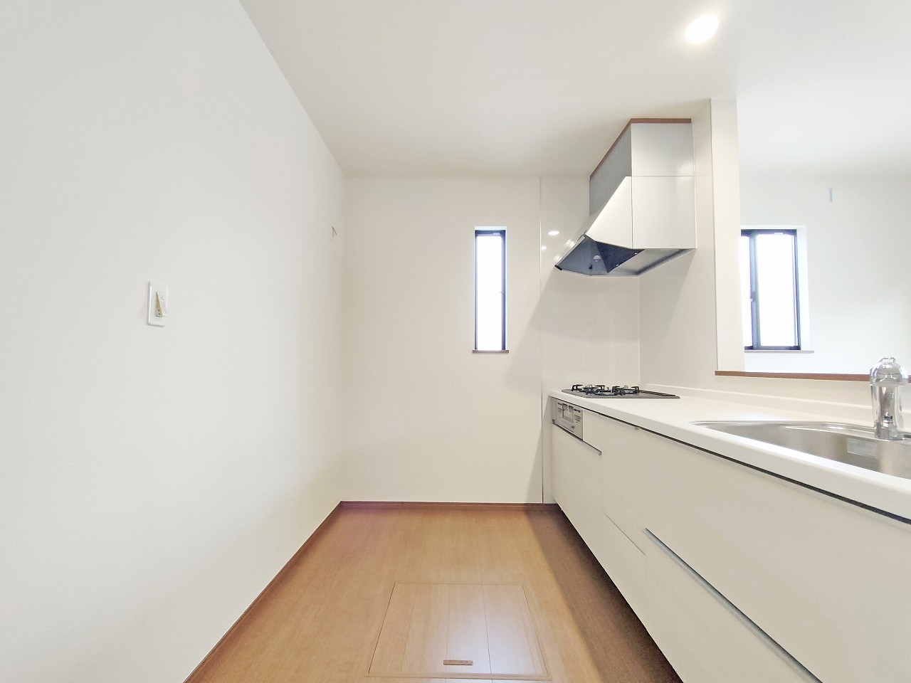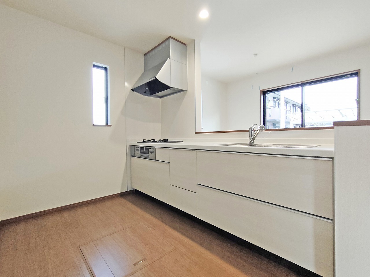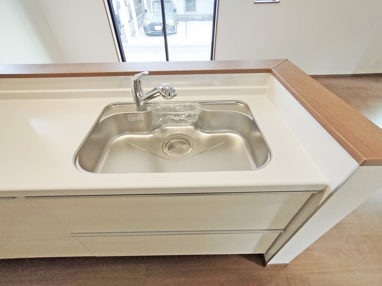 金物の反射がまぶしい新品のシンク。快適なお料理空間を演出します。 ステンレスのピカピカのシンク。洗い物がしやすい深いタイプですので、片付けもきっとはかどります。
