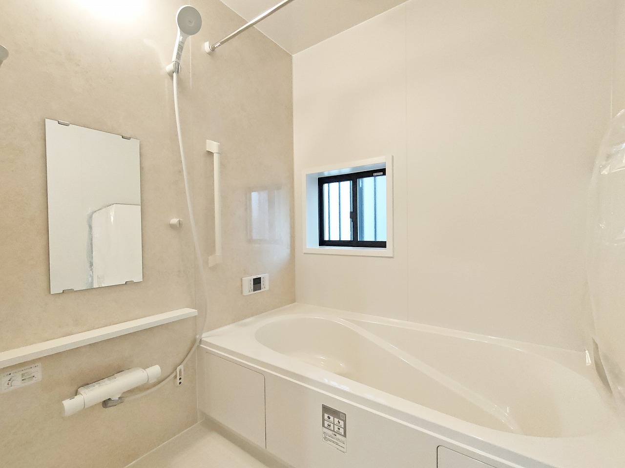 D号棟 バスユニット1坪タイプ、浴室乾燥機、手すり付き。
