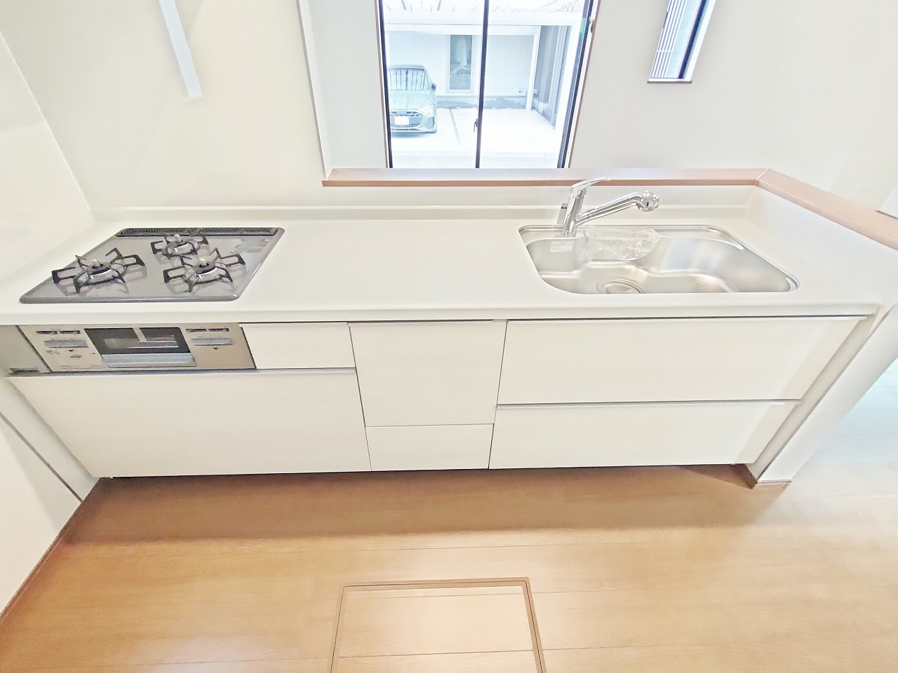 B号棟 リビングで遊ぶお子様を見守りながらお料理ができる、対面キッチン。