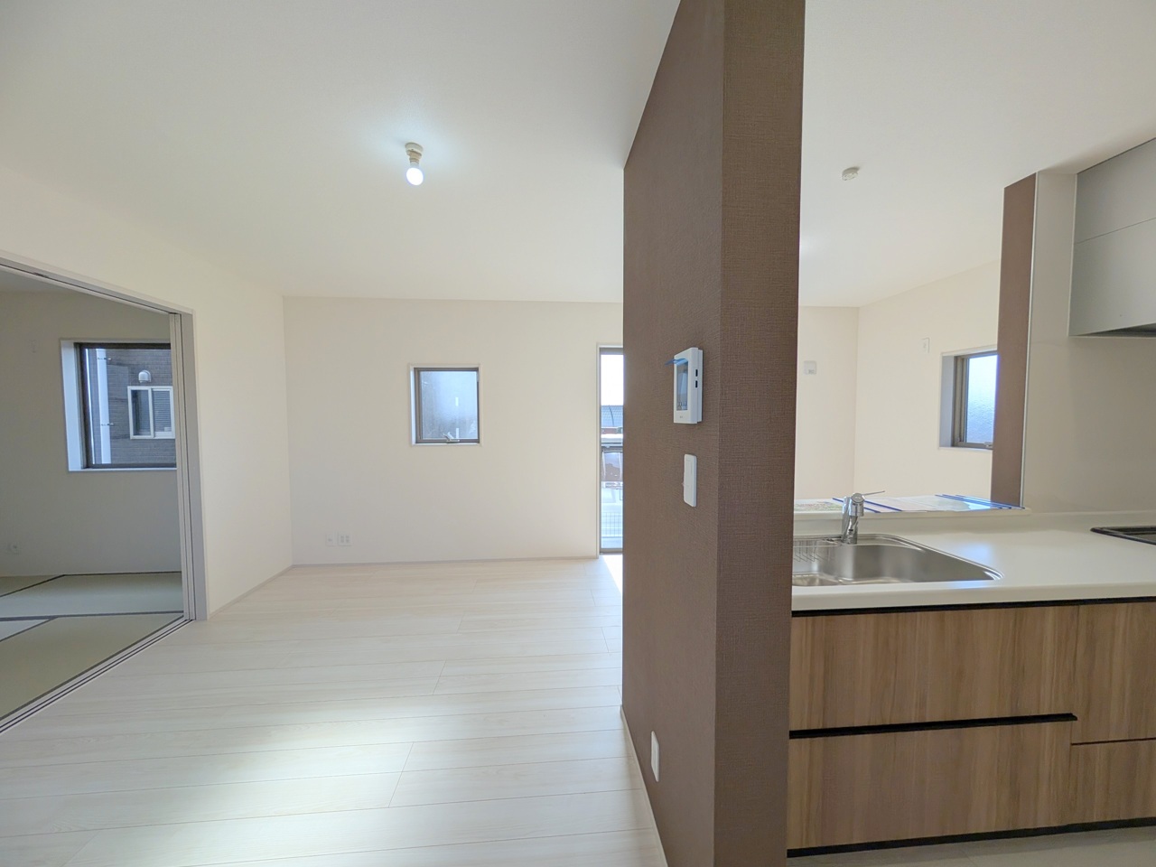 リビングと一体のように使える和室。キッチンからもよく見えます。
