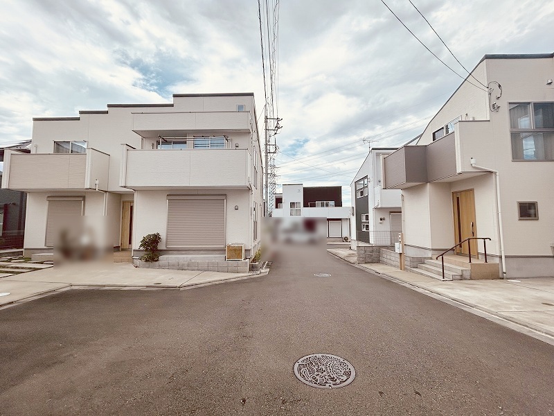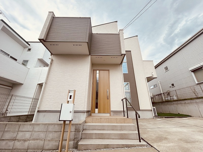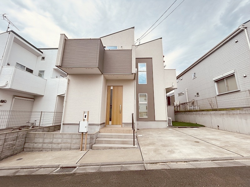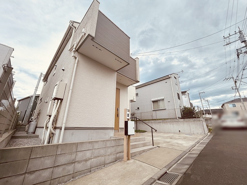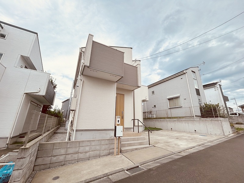 周辺の街並みの中で適度な主張、生活に溶け込むシンプルなデザインの外観が魅力の一戸建です。