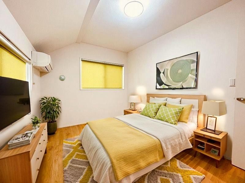 洋室はモダンなデザインと機能性を備え、快適な生活空間に。明るい窓から差し込む自然光が広々とした空間をさらに明るく開放的に感じさせます。