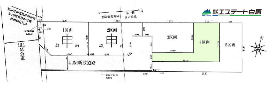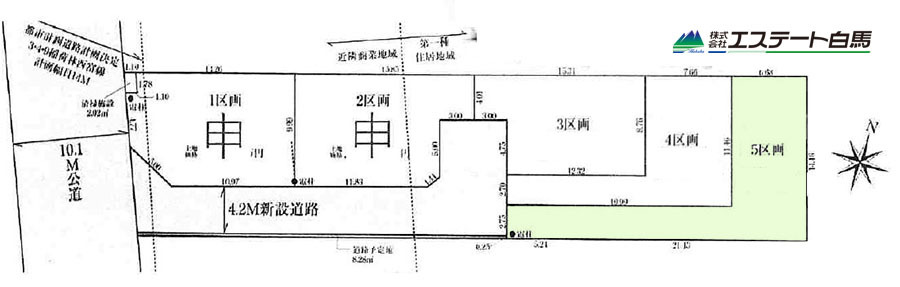 | 備考・制限等 | 法22条区域、ゴミ置場持分2.02平米の内1/5あり、道路予定地8.28平米の内1/5あり、がけ条例、航空法、景観法、西側に都市計画道路あり、不整形地(4.5号棟)、水道分担金給水工事手数料要 | ||