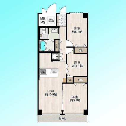 | 間取 | 3LDK (LDK10.9帖、洋室5.7帖、洋室5.1帖、洋室3.8帖) | ||