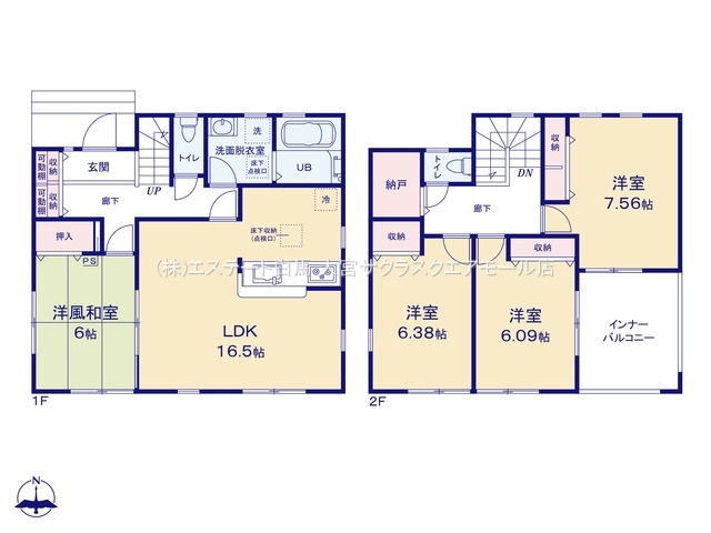 | 間取 | 4SLDK (LDK16.5帖、和室6帖、洋室7.56帖、洋室6.38帖、洋室6.09帖) | ||