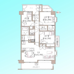 | 間取 | 3LDK (LD16.1帖、洋室6帖、洋室5.5帖、洋室5帖) | ||