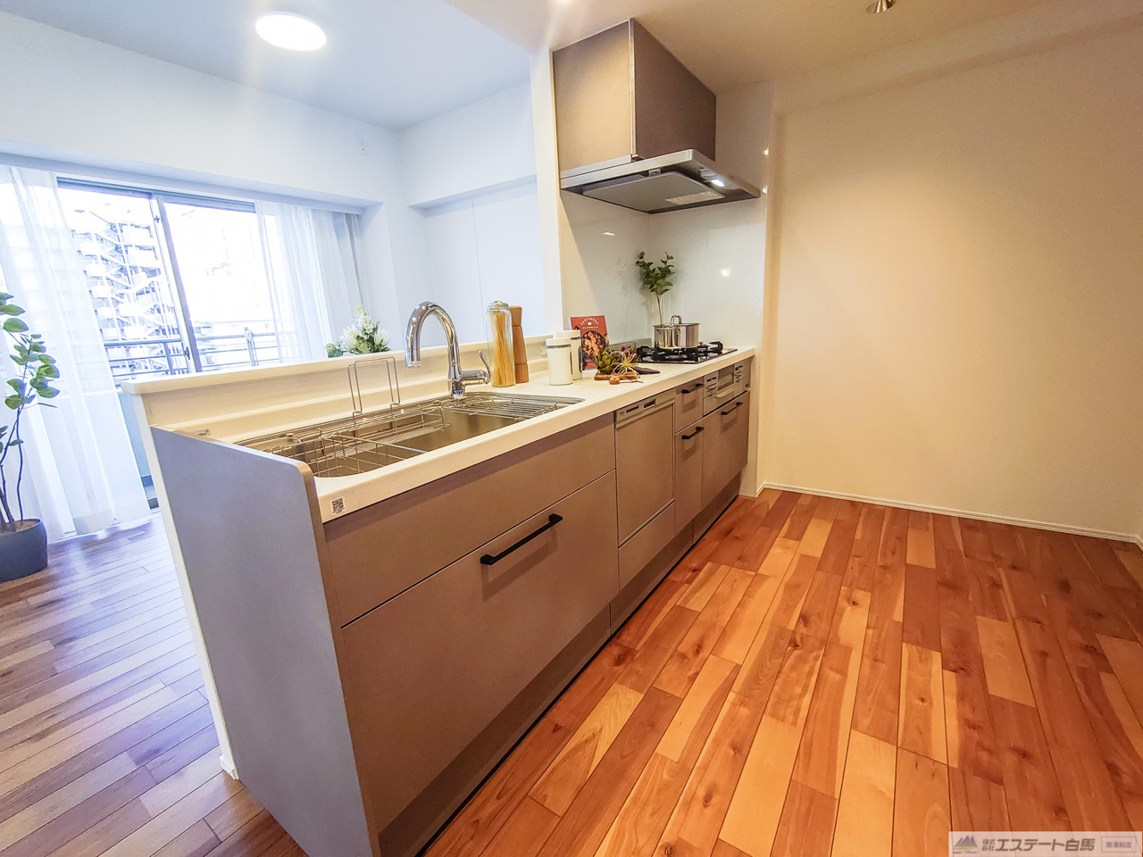 お子様と並んで料理をしても余裕のゆとりのキッチン
