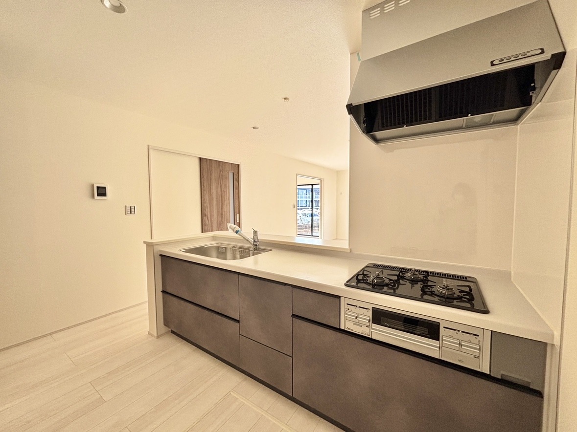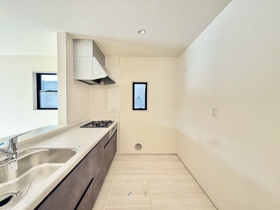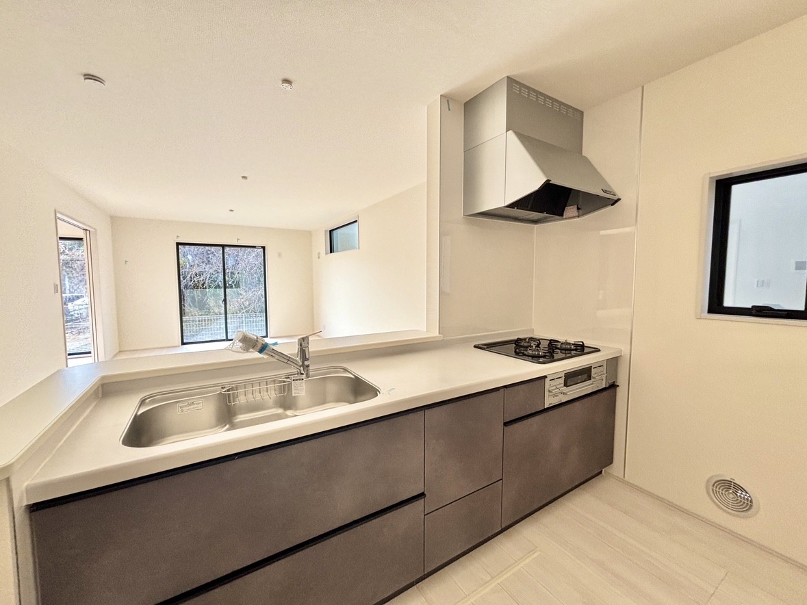2号棟 明るい光が降り注ぐ窓があるキッチンはお料理を作る時の気持ちもいつもより明るくなります。近くに窓があるので換気もしやすいですね。