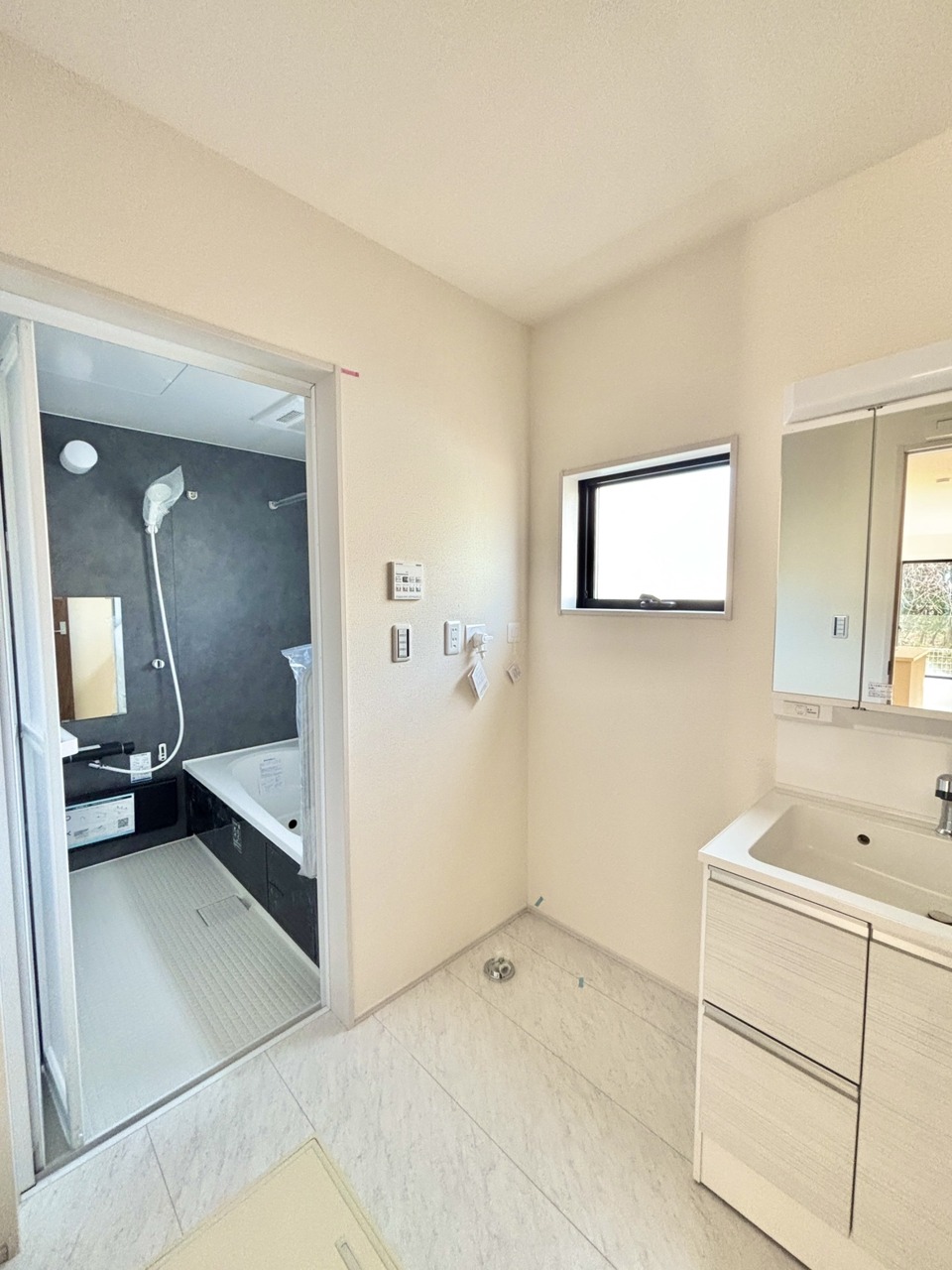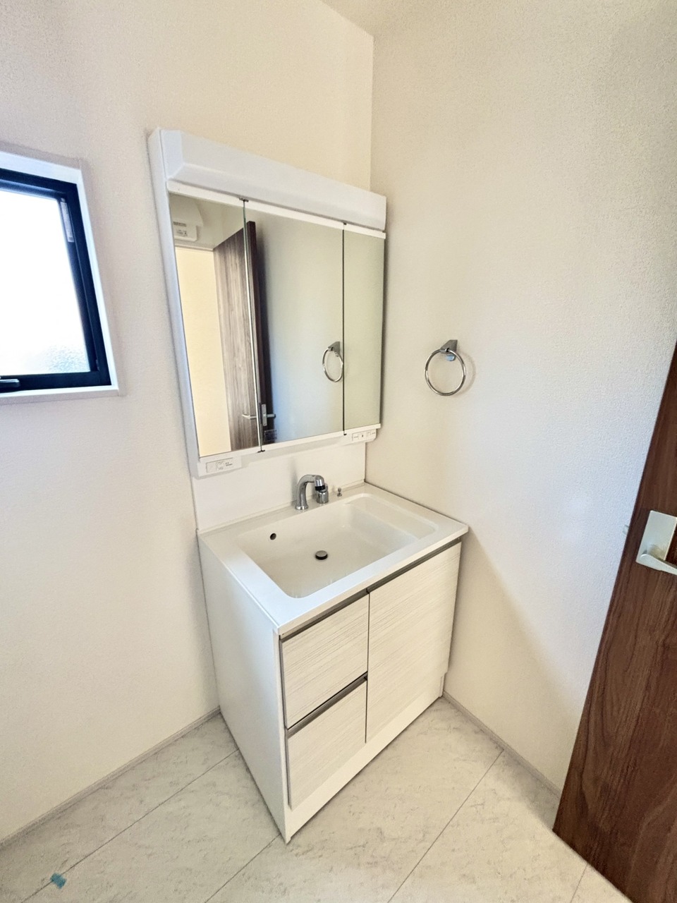 2号棟 お出かけ前の身だしなみに一歩差がつく三面鏡。ミラー裏にはたっぷり収納もございます。
