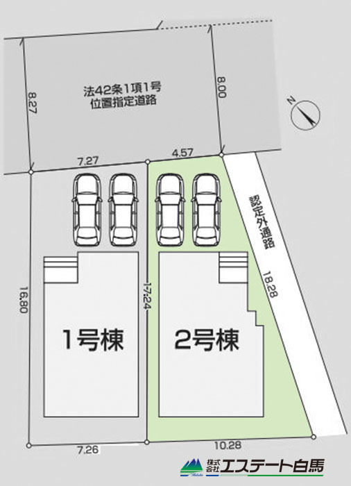 | 備考・制限等 | 南東側道路は認定外道路(2号棟) | ||