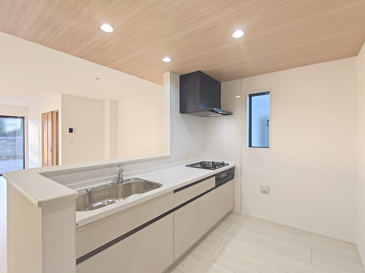 対面式のシステムキッチン。調理しながらでも家族の様子を見守れる為、子育て世帯にもオススメです。