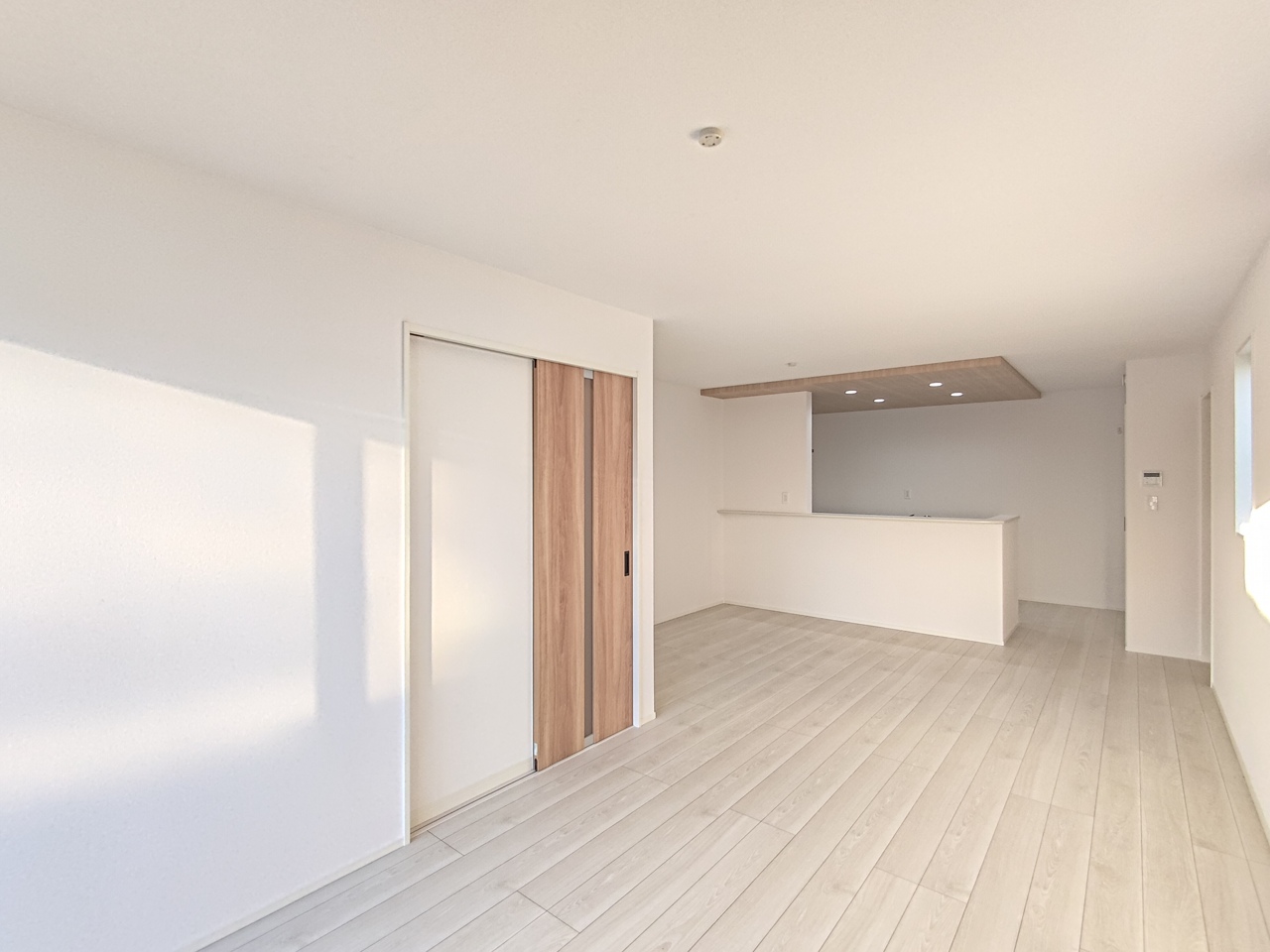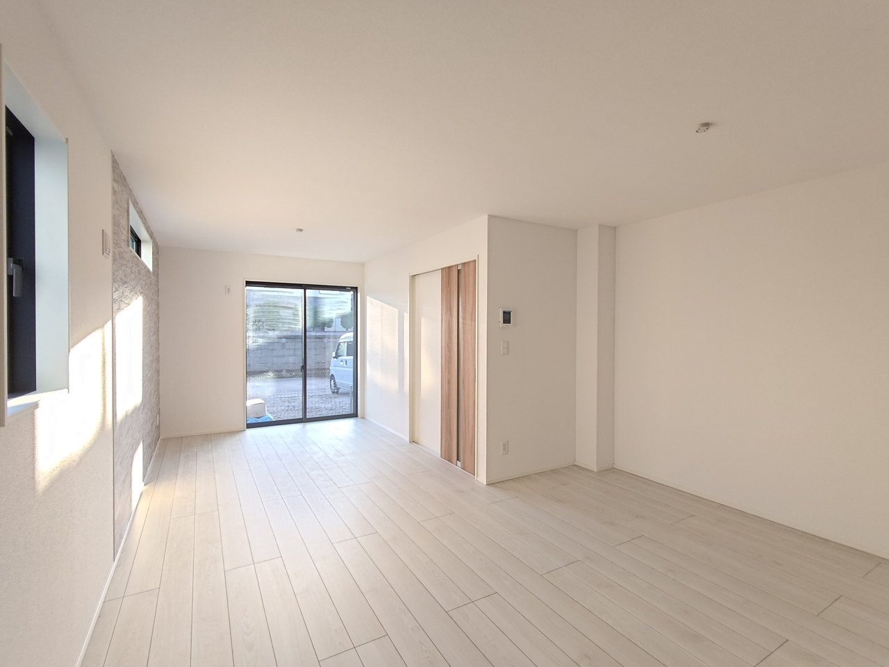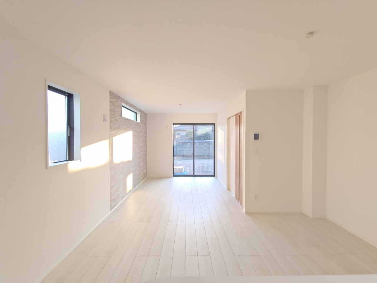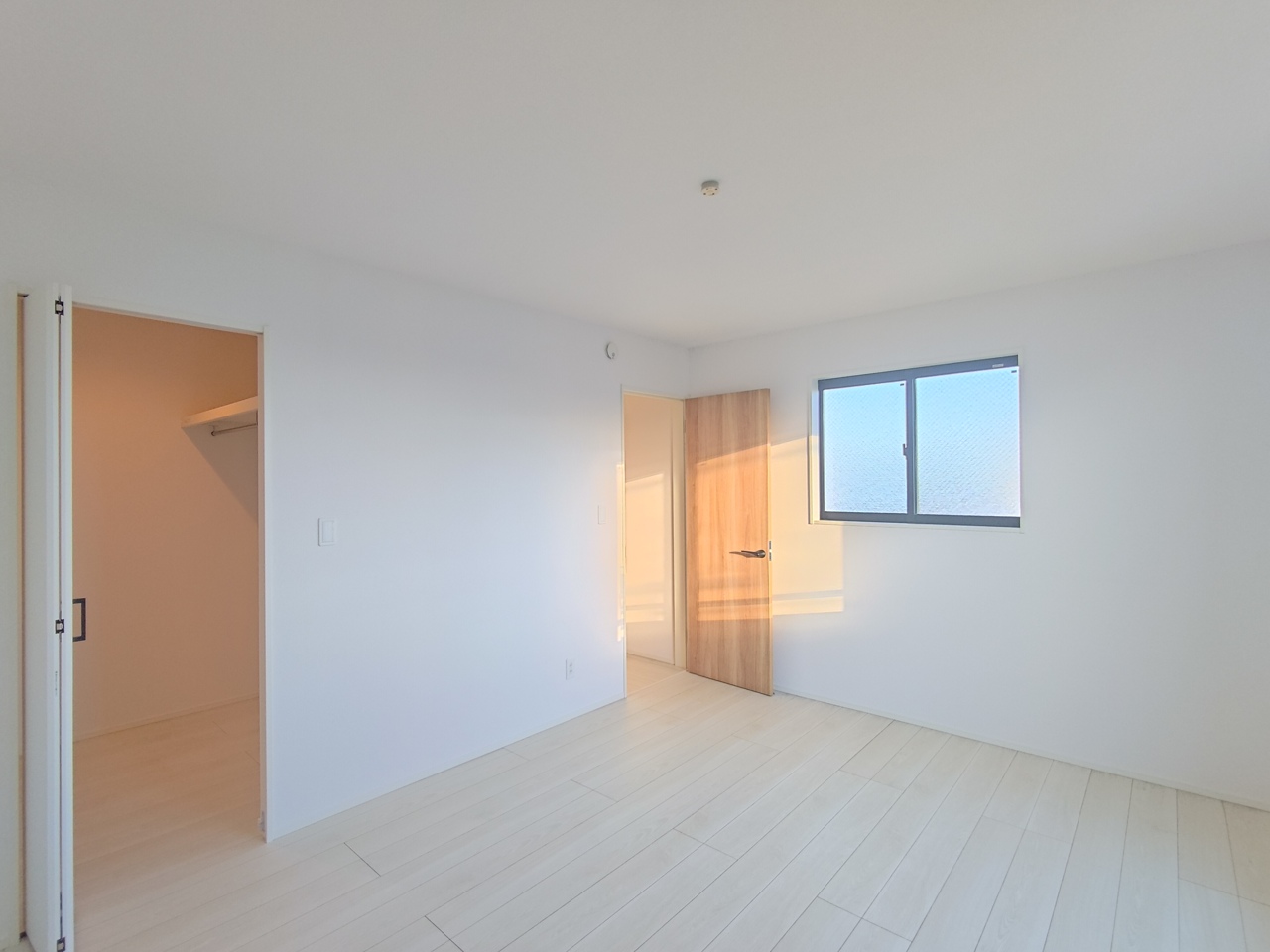 【2階洋室/約5.25帖/西側】 白を基調とした明るい内装デザイン。