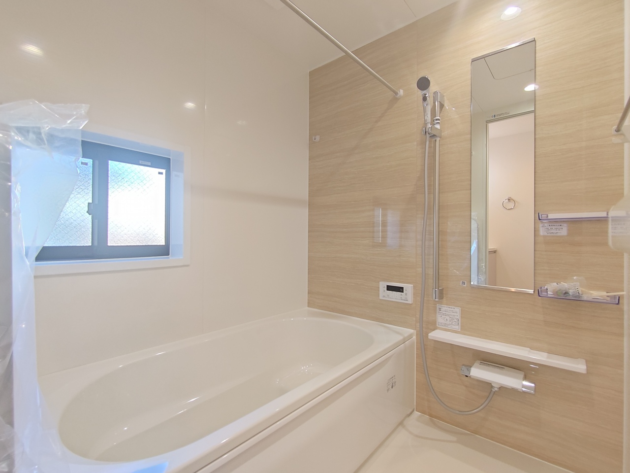 ゆったりと足を伸ばせる1坪サイズのバスルーム。 便利な浴室暖房乾燥機付きです。