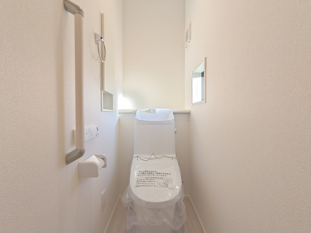 手すりが配された1Fトイレ。