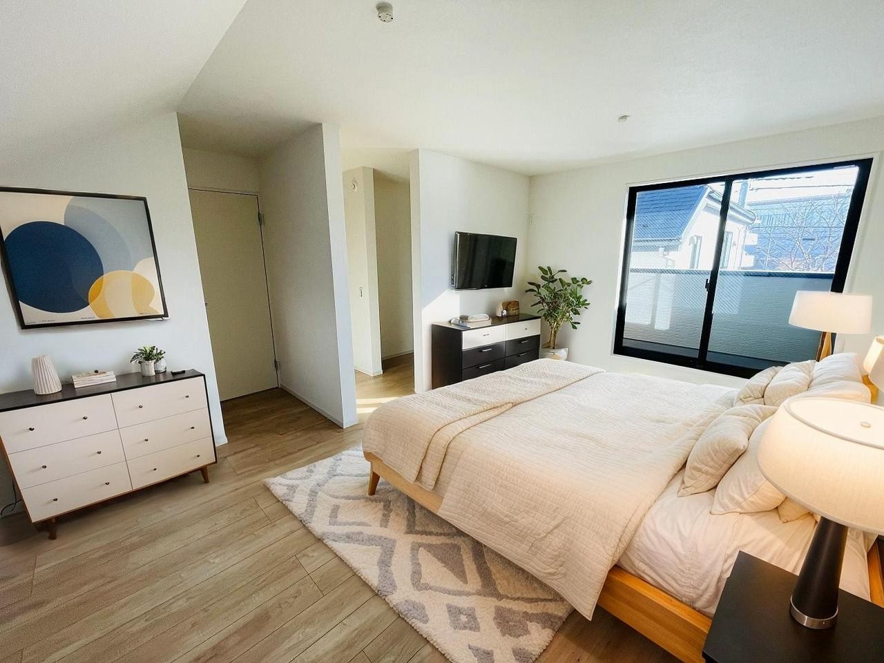 洋室はモダンなデザインと機能性を備え、快適な生活空間に。明るい窓から差し込む自然光が広々とした空間をさらに明るく開放的に感じさせます。