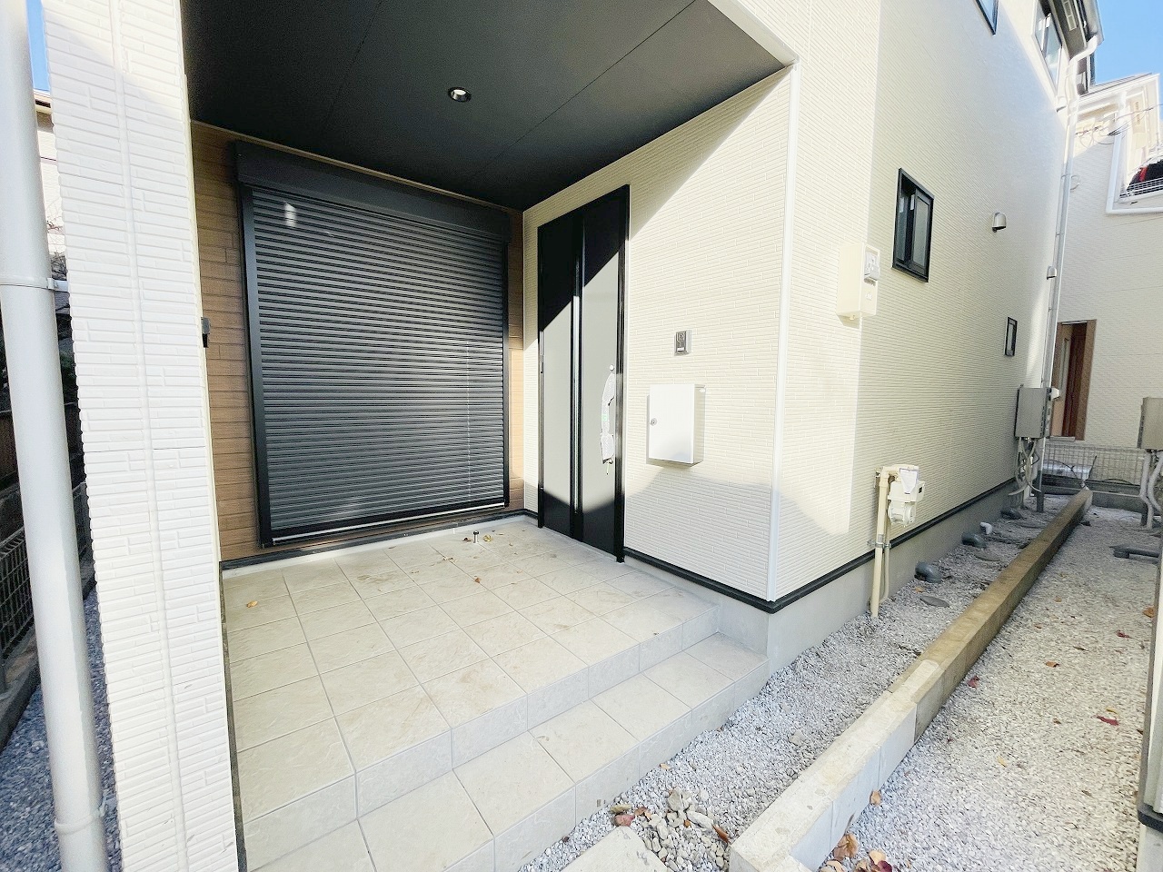 周辺の街並みの中で適度な主張、生活に溶け込むシンプルなデザインの外観が魅力の一戸建です。