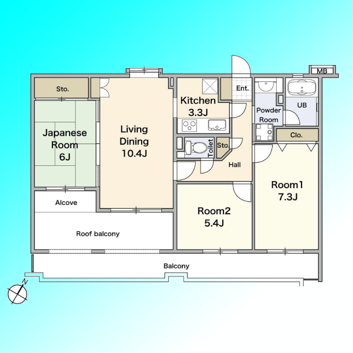 | 間取 | 3LDK (LD10.4帖、K3.3帖、和室6帖、洋室7.3帖、洋室5.4帖) | ||