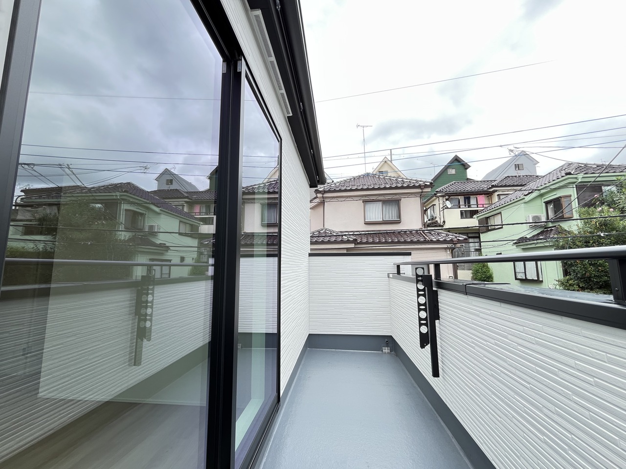 陽ざしが差込む明るいバルコニー。奥行きのあるバルコニーはお洗濯時に助かります。