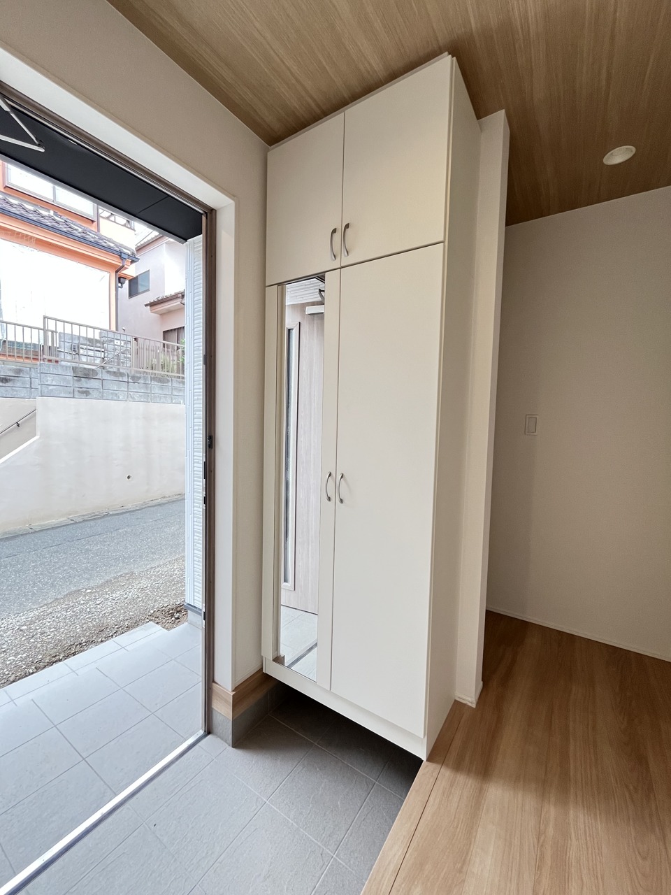 明るく開放的な玄関、靴の脱ぎ履きもしやすく、収納も豊富でご家族皆様の靴をスッキリ収納できます。