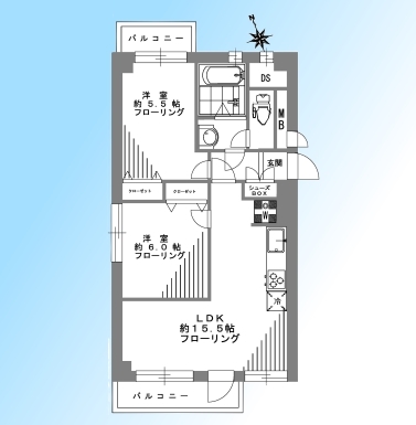 | 間取 | 2LDK (LDK15.5帖、洋室6帖、洋室5.5帖) | ||