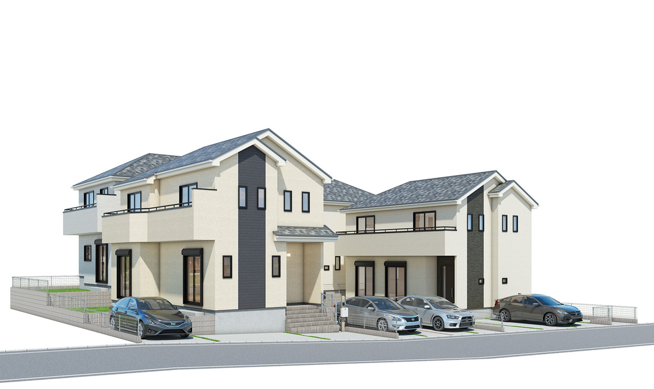 - ※完成予想図はいずれも外構、植栽、外観等実際のものとは多少異なることがあります。