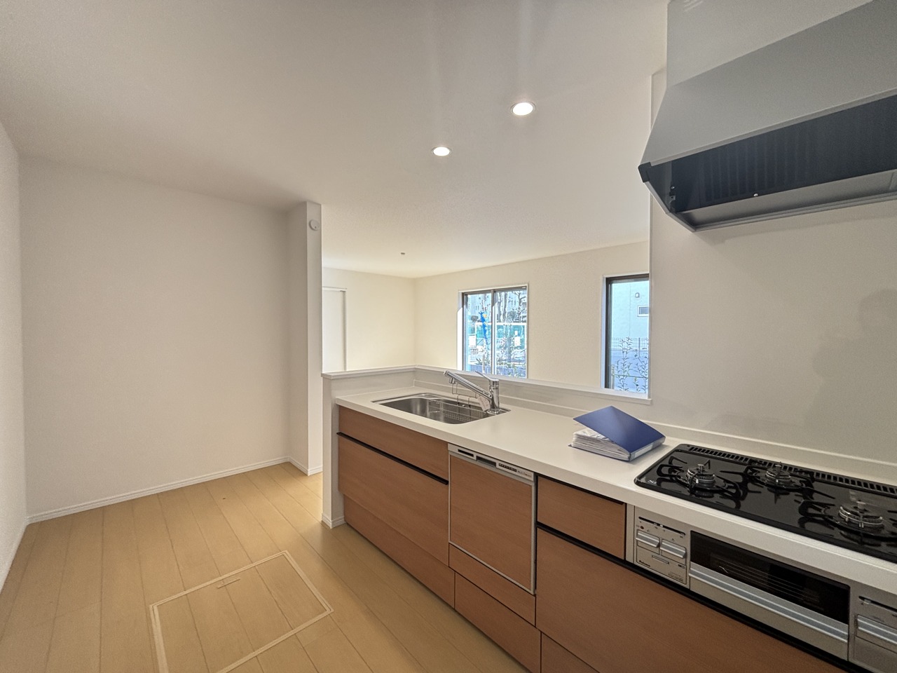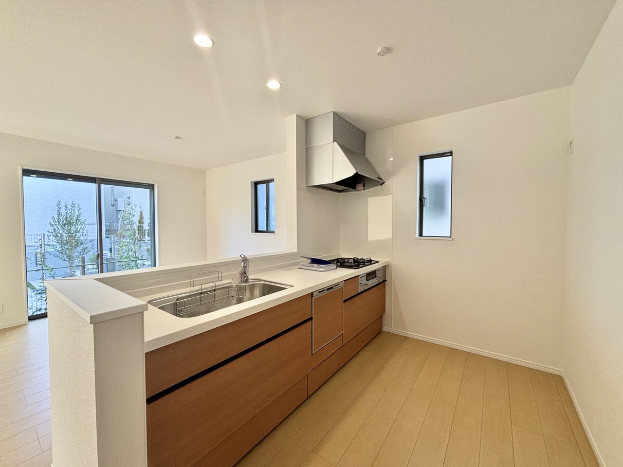 B号棟 キッチンはオープンカフェスタイルだからリビングとの一体感はバッチリ。毎日のお料理時間も楽しくなりそうです。 2026/01/29m