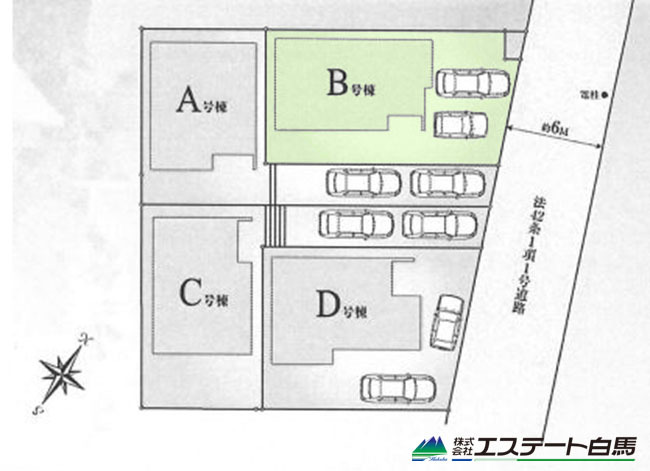 D号棟 6m幅員の道路に面しておりお車の運転が苦手な方でも安心して出入りいただけます。 2025/11/24m